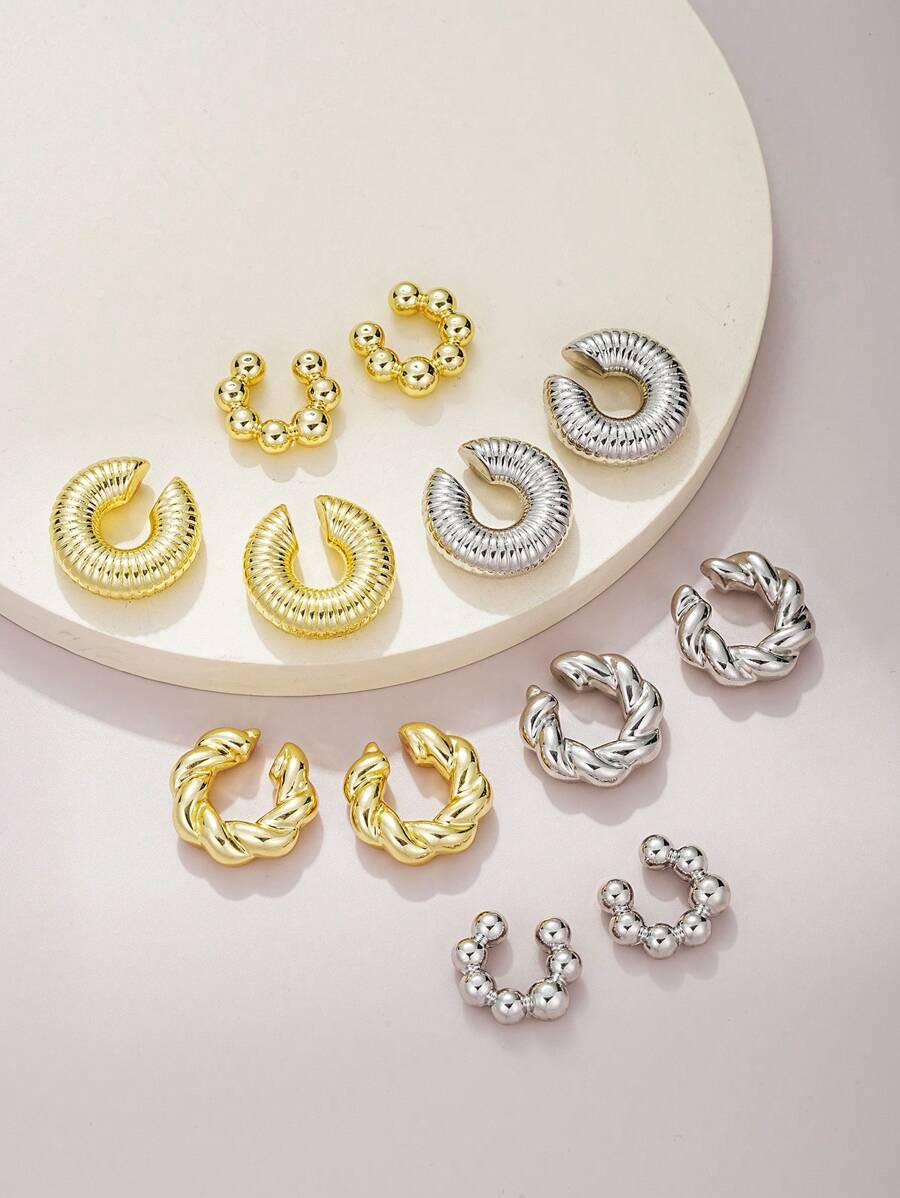 2pcs/set Simple C Design Clip-on Earrings & Stud Earrings, Women's Holiday Dating & Christmas Gift