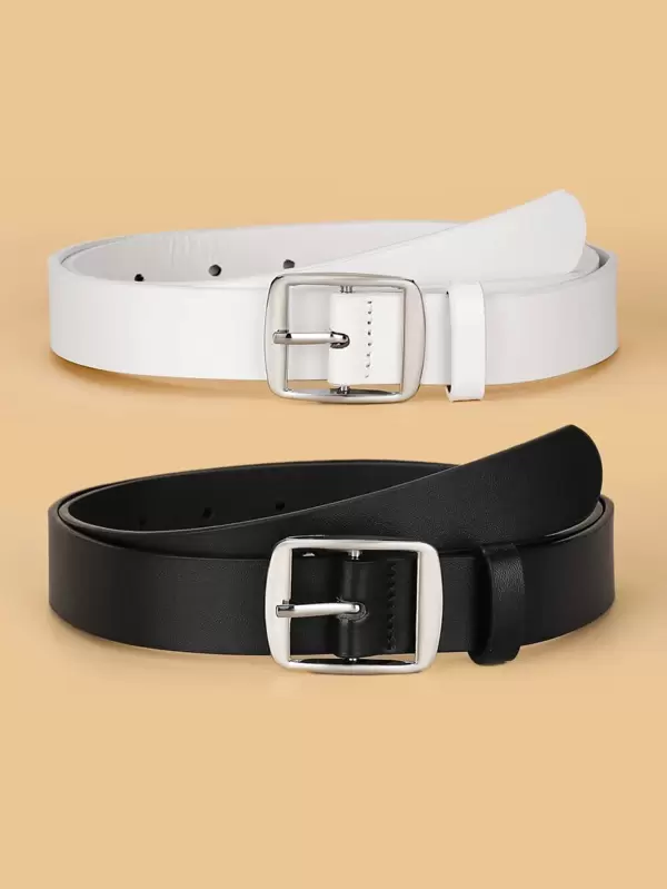 2pcs/set White & K Color Square Buckle Fashionable Decorated Pu Belt For Daily Use