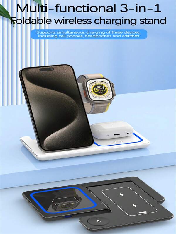 3 In 1 Foldable LED Fast Wireless Charger Stand For IPhone 14 13 12 11 Apple Watch Airpods Pro 8 7 Charging Station