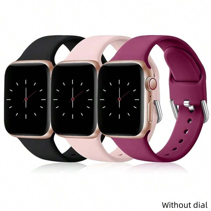 3 Pack Metal Buckle Soft Silicone Apple Watch Band (Without dial) Compatible with Apple Watch Bracelet 40mm 44mm 41mm 45mm 38mm 42mm 49mm Soft Silicone Bracelet for Series 8 7 6 5 4 3 1 SE Ultra,Women Men