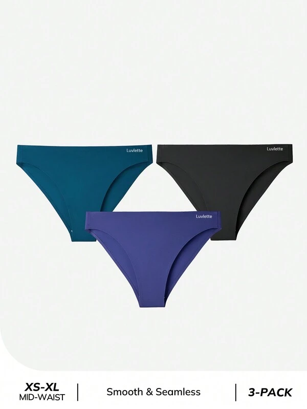 Luvlette 3-Pack Mid Waist No-Show Bikini Panties