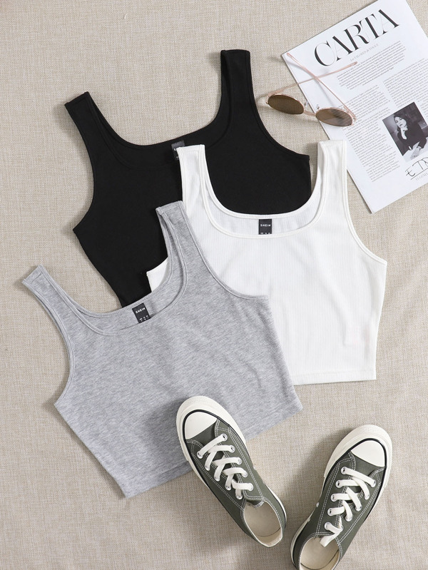 SHEIN EZwear 3 Pack Solid Crop Tank Top