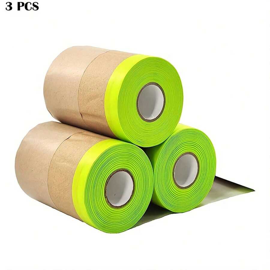 3 Rolls Painting Masking Paper For Covering , Frames, Cars And Auto Body Paint Adhesive Protective Paper Roll