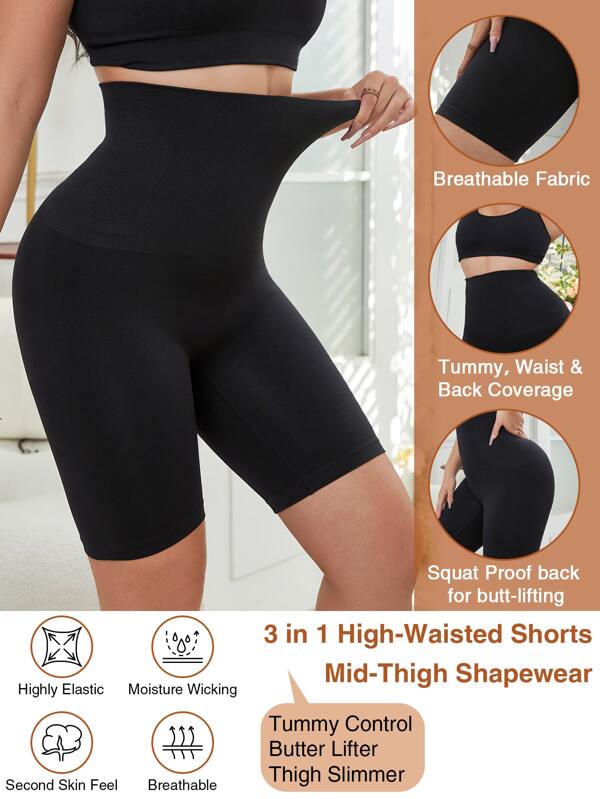 3 in 1 High-Waisted Shorts Mid-Thigh Slimming Tummy Control Shorts Mid-Thigh Butt Lift Shapewear