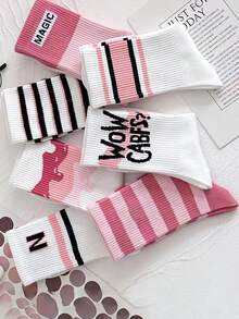 3 pairs of ladies (random style) four seasons universal pink ins style fashion all-match letter long tube students all-match breathable mid-tube socks