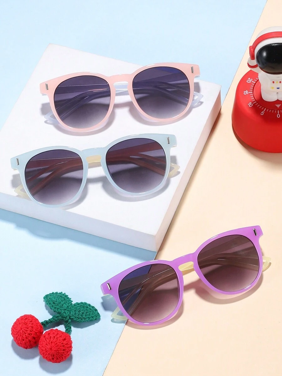 3 pcs Kids 6-12Y Square Jelly Color Clash Fashion Sunglasses for Daily Use