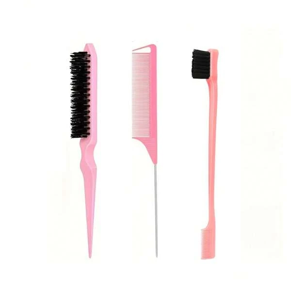 3 pcs Pink Hair Styling Comb Set - Teasing Brush, Rat Tail Comb, and Edge Brush for Smooth and Shiny Hair - Perfect for Women's Hair Care