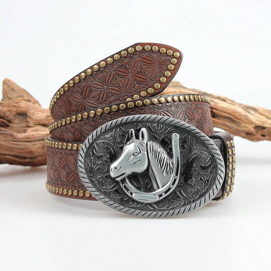 3.7cm Width Western Denim Belt, Trendy Men's Buckle Head Personalized Belt, Street-Level High-End Retro Trousers Belt