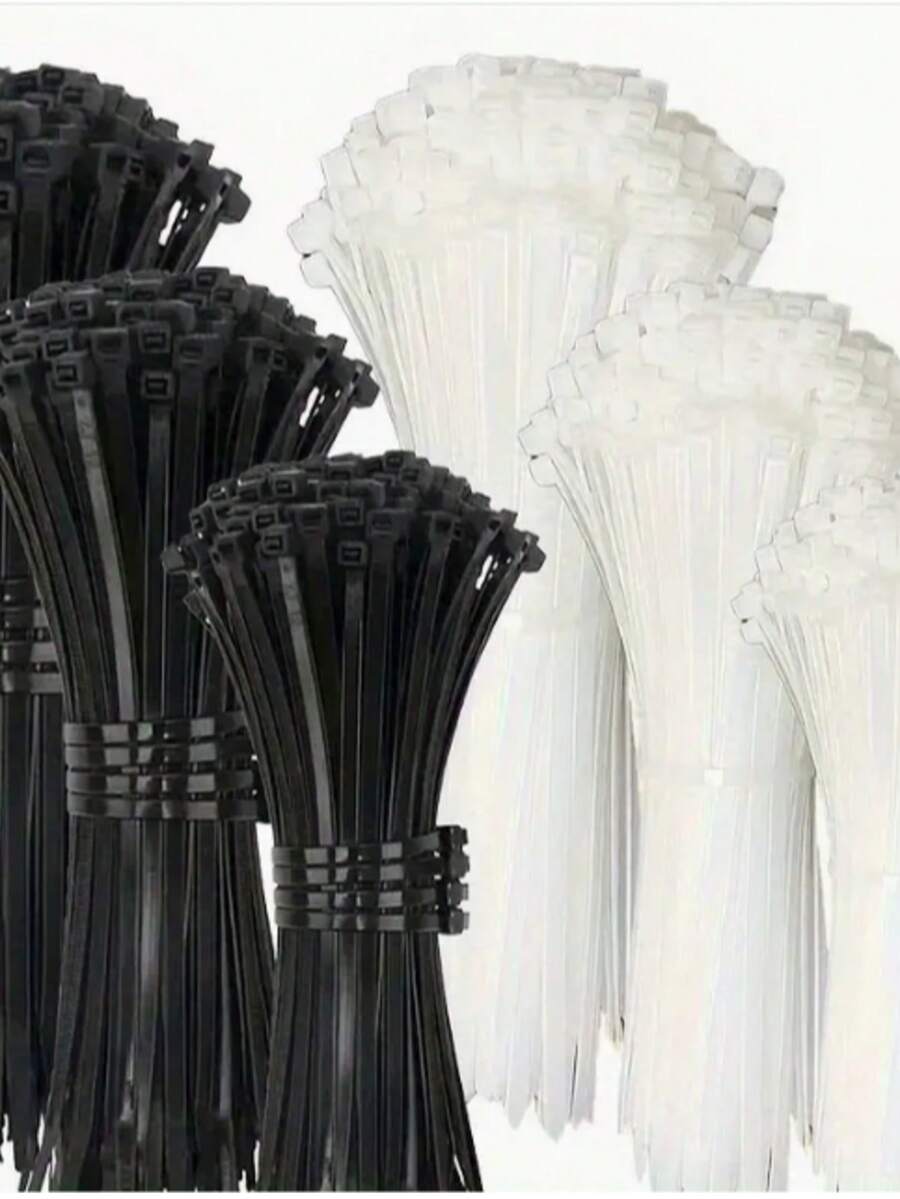 300pcs Black & White Nylon Cable Ties, Size 10cm/15cm/20cm, Made Of Brand New Nylon Material, Suitable For Home Wiring Management, Engineering Bundling, Black & White Self-Locking Nylon Tie Wrap 10/15/20cm Set, Tie For Order And Neatness, Applicable For Home, Office, Construction Site, Automotive And More Scenarios