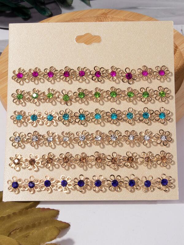 30pairs/set Fashionable Zinc Alloy Rhinestone Decor Flower Design Stud Earrings For Women For Daily Decoration