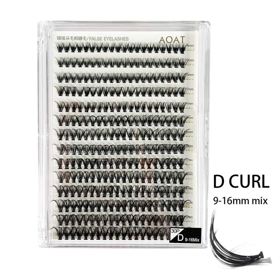 30pcs 0.05mm Diameter Individual False Eyelashes, Mix Length (9-16mm), 280 Clusters, D Curl