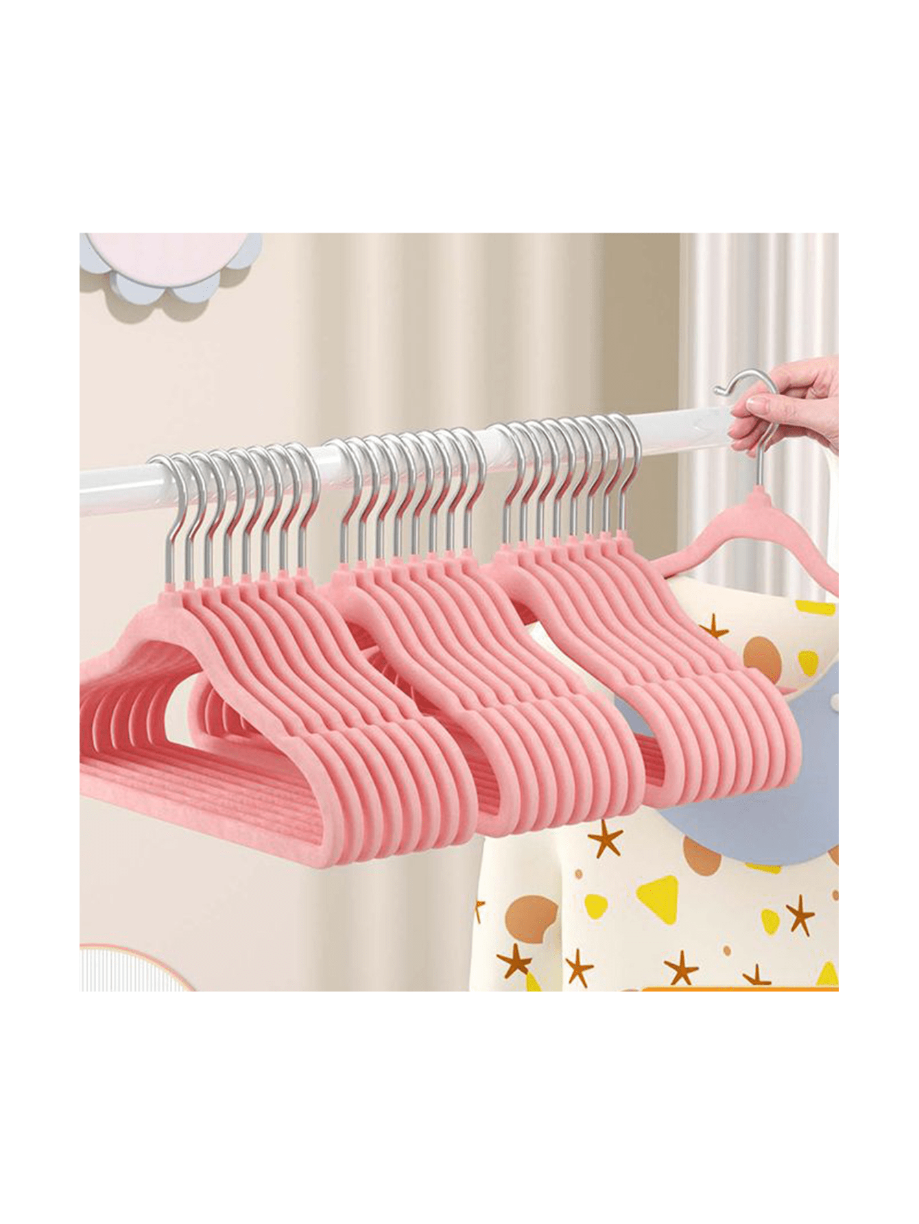 30pcs Children'S Clothes Hangers In Three Colors (Grey/White/Pink), 10pcs Per Color. Velvet Coated, Doubled Anti-Slip Design, Easy To Organize And Prevent Clothes From Falling.