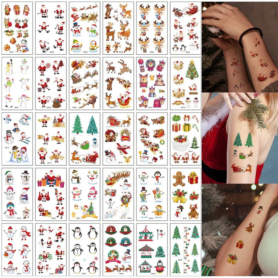 30pcs Christmas Cartoon Pattern Temporary Tattoo Sticker Set, Waterproof And Long Lasting, Suitable For Body, Arms, And Makeup Use In Holiday Parties