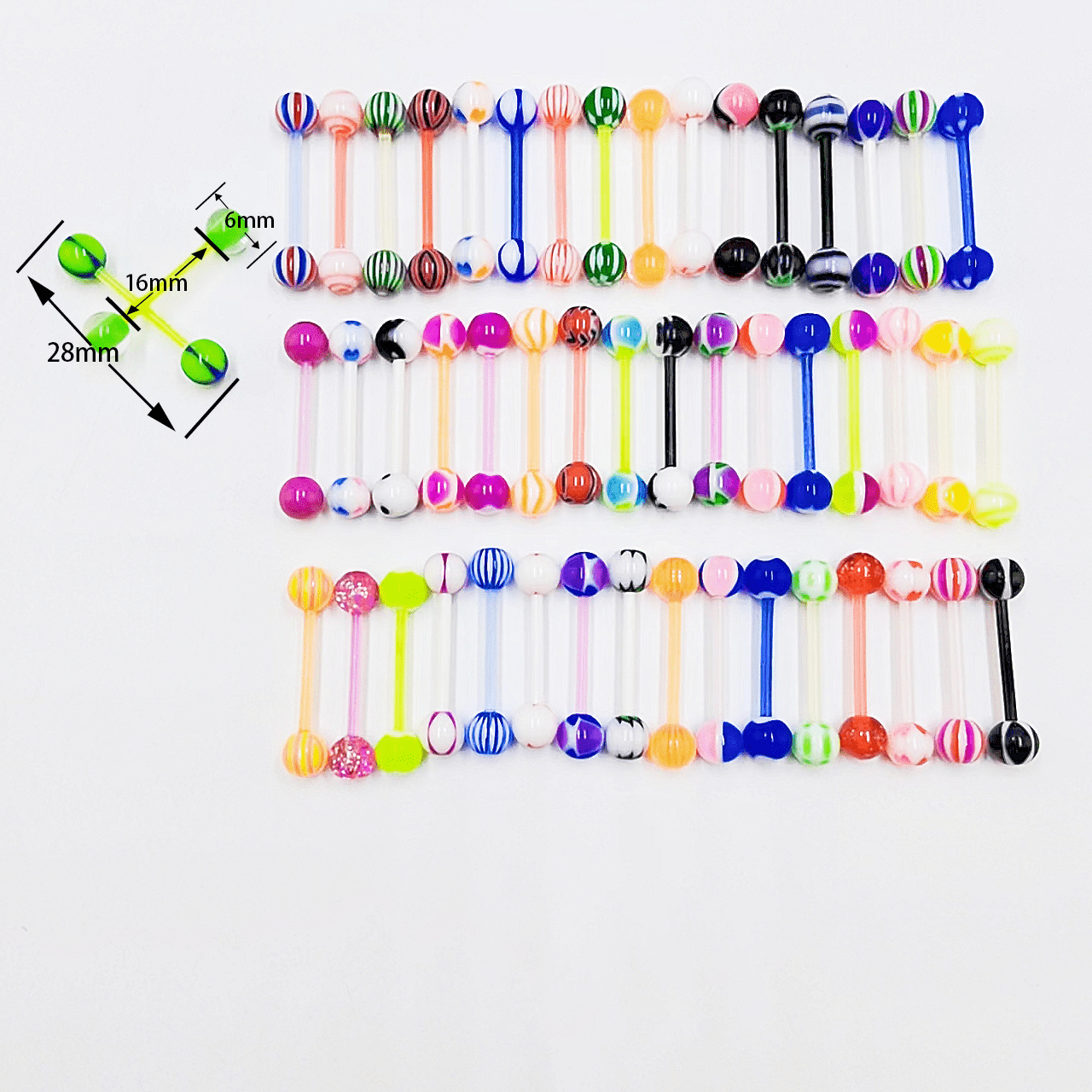 30pcs Fashionable Acrylic Uv Tongue Barbell Piercing Random Color