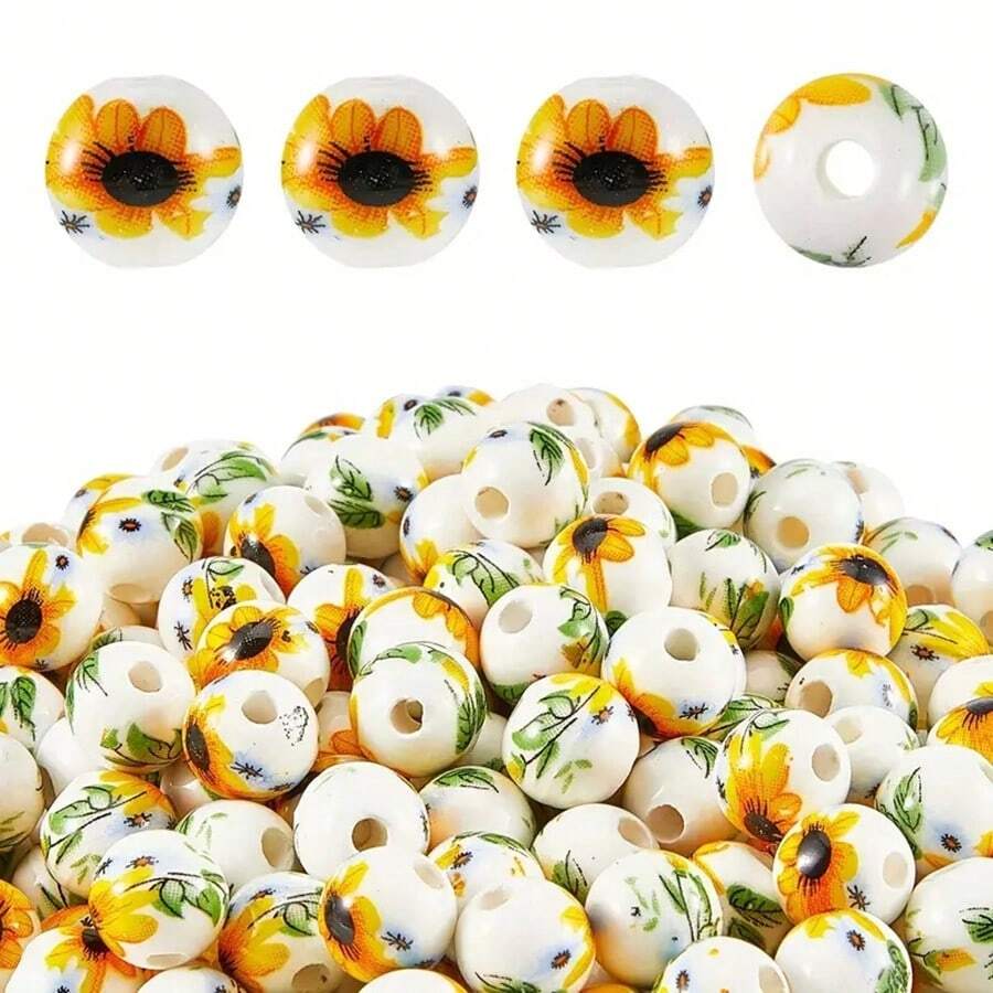 30pcs New Arrival Sunflower Ceramic Decal Beads For Diy Handmade Bracelet Necklace Jewelry Making