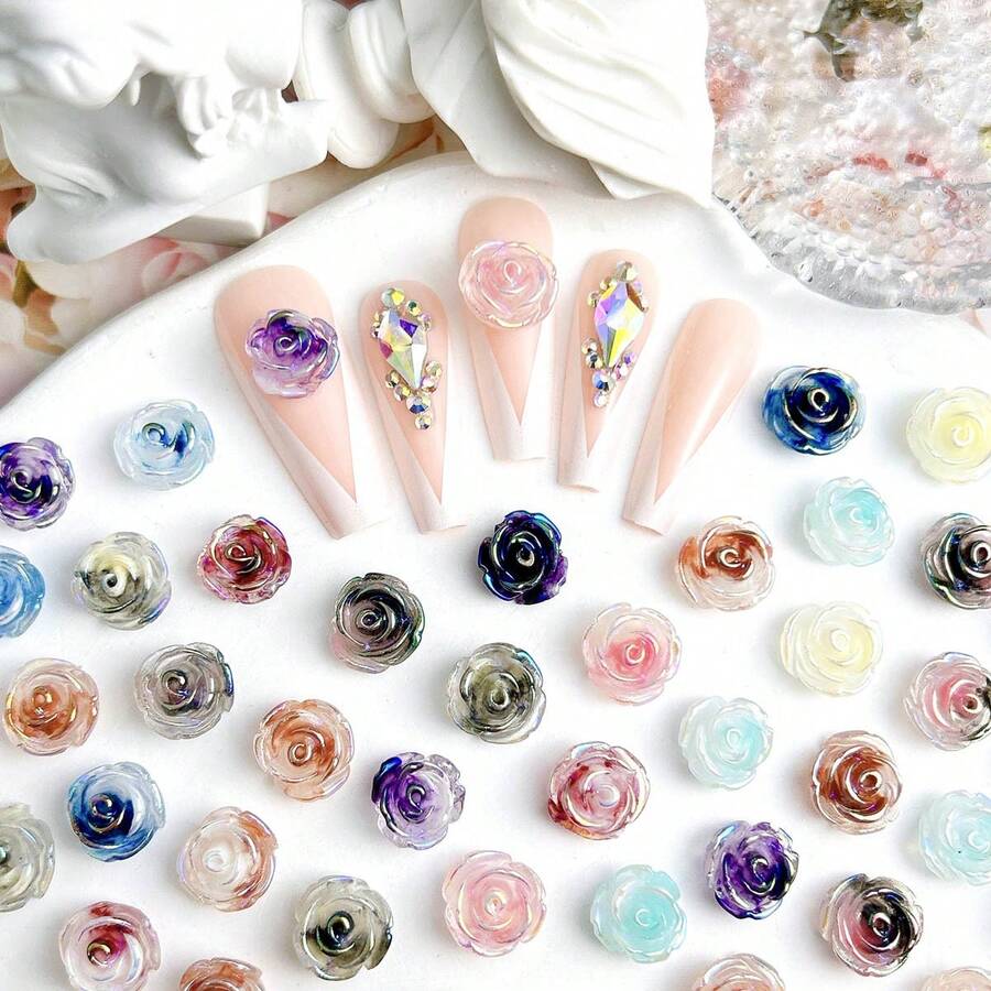 30pcs Random Mixed Gradient Rose Shaped Diy Nail Art Decorations