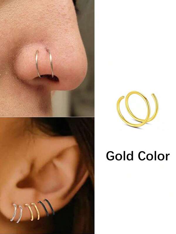 316L Stainless Steel Nose Ring Spiral Double Rook Hoop Fasion Unique Helix C-Shape Nose Jewelry For Single Piercing Rings Hoops