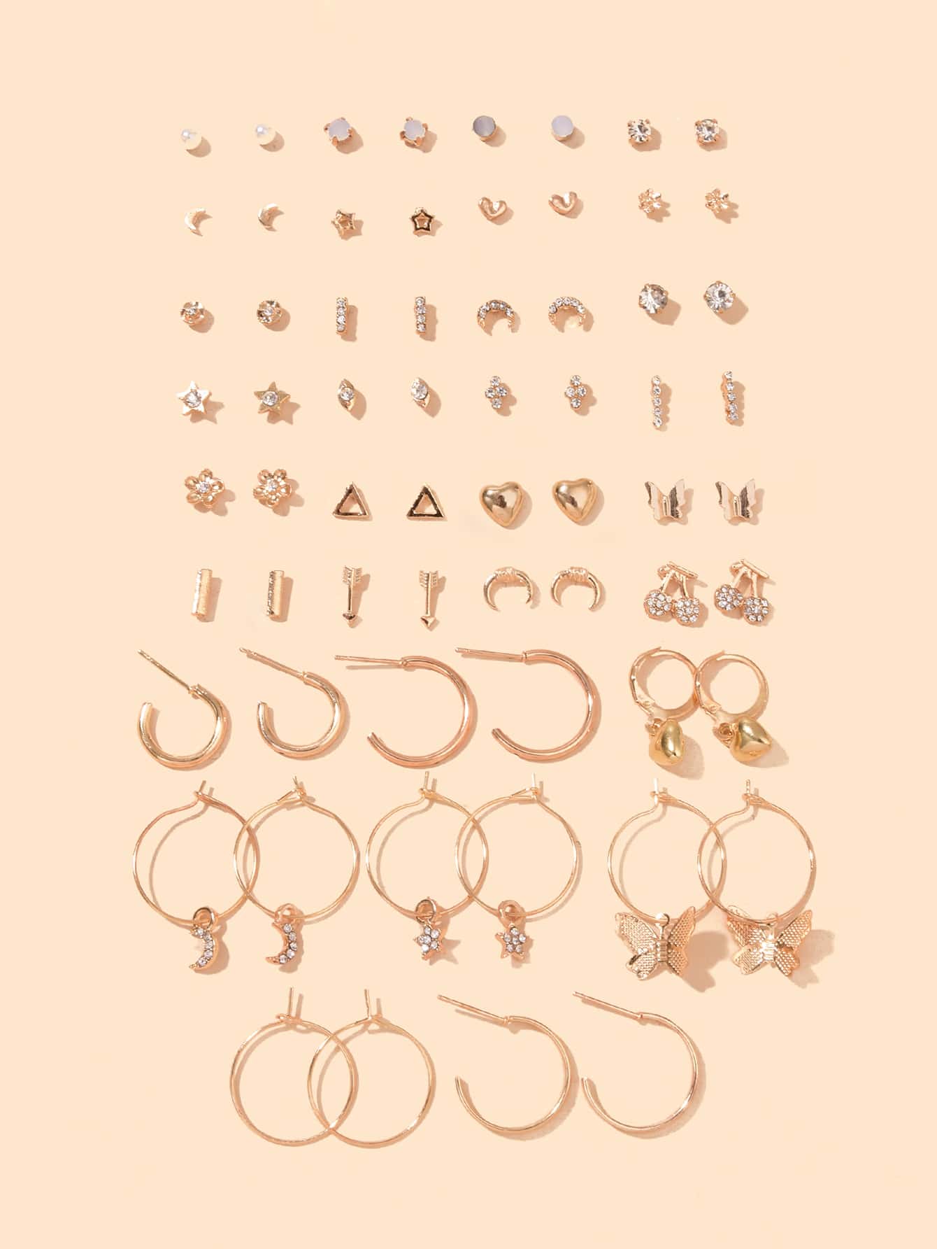 32pairs Butterfly & Rhinestone Decor Earrings
