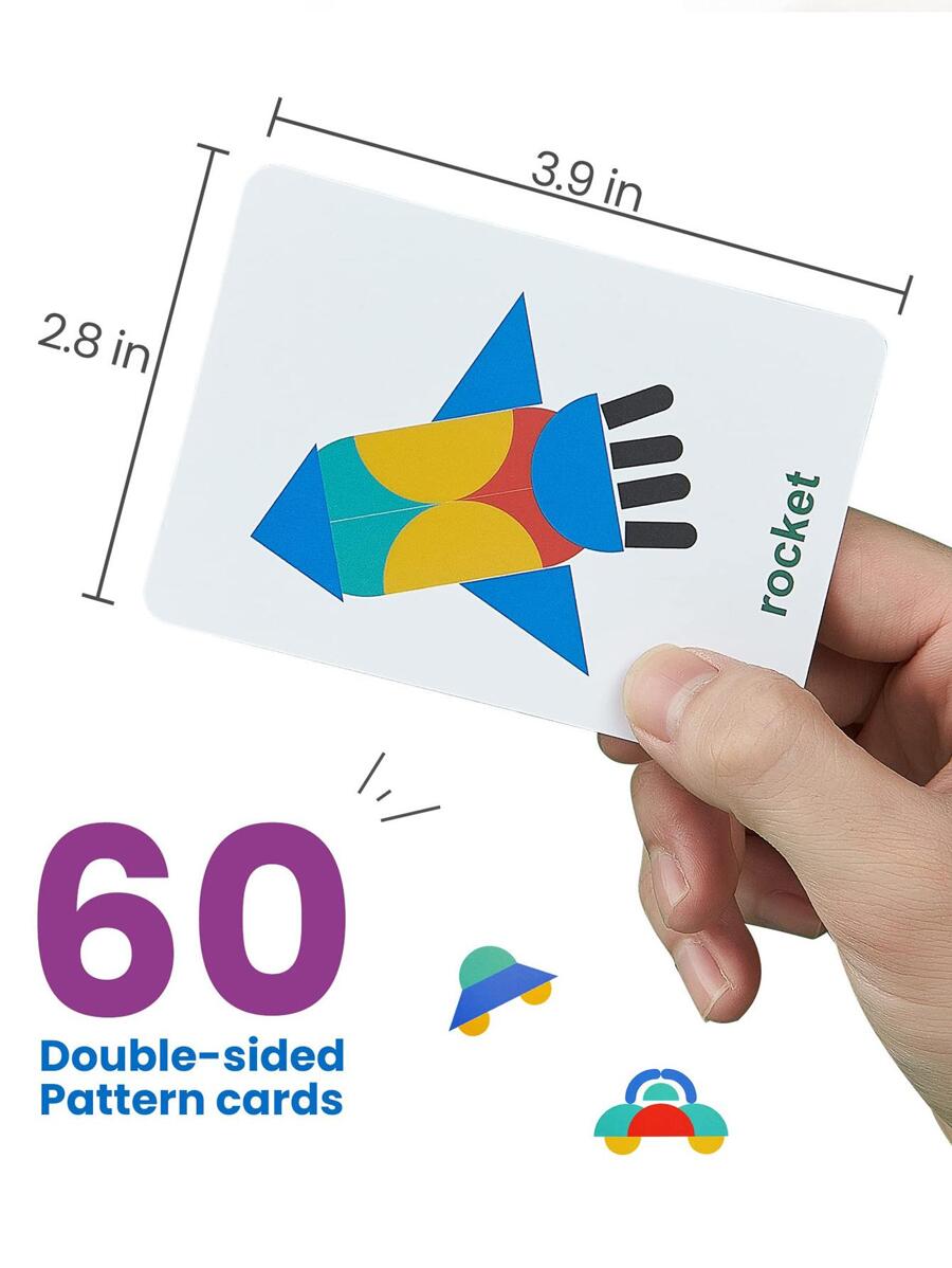 36 Shape Pieces& 60 Design Cards-Wooden Pattern Blocks Jigsaw Puzzle Montessori Toys Sorting and Stacking Games for Toddlers Kids Boys Girls Age 3+ Years Old
