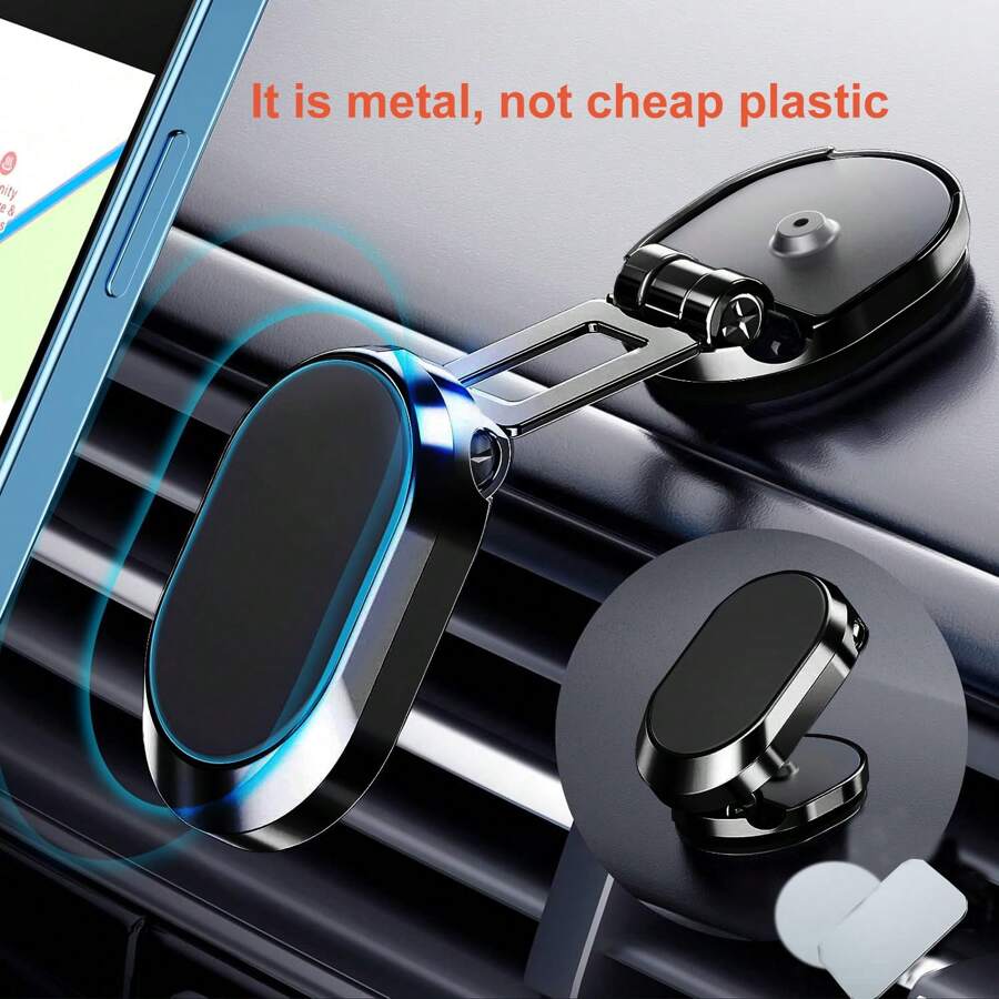 360 Degree Rotating Foldable Magnetic Phone Holder For Car, Universal Dashboard Metal Pole Car Phone Mount