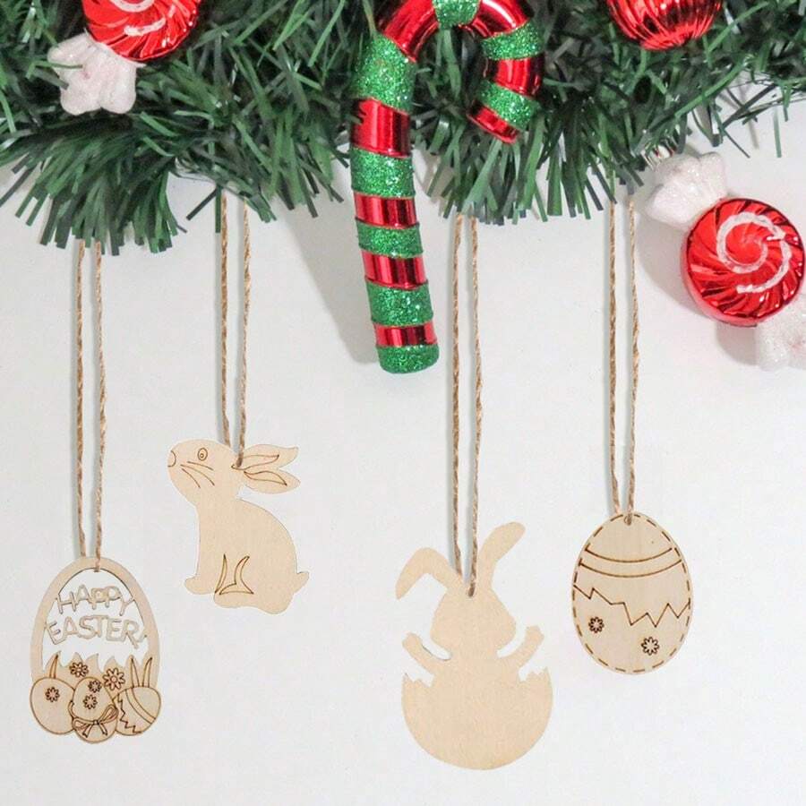 36pcs Easter Festival Ornaments, Home Decoration, Wooden Crafts Creative Carved Wood Slice Pendant, Suitable For Graffiti And Essential For Festival Surprises