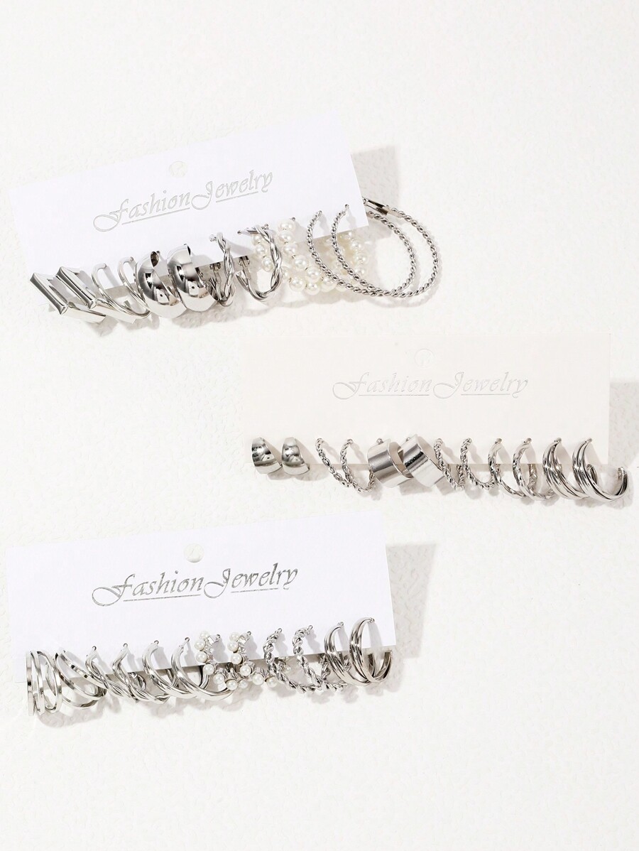 36pcs/set Faux Pearl Decor Earrings 48pcs Multi-element Metal Earrings Set Women's Fine Jewelry Birthday Gift