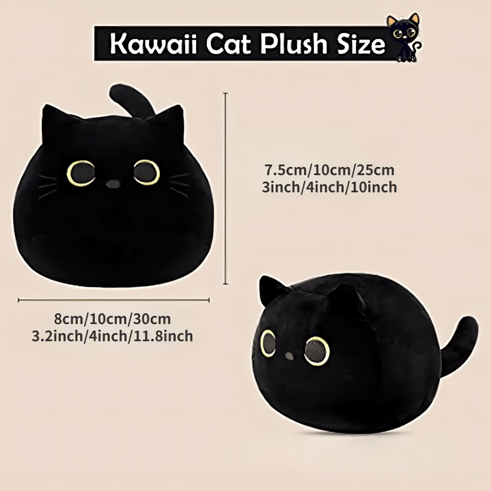 3D Cat Stuffed Animal Toy,Small Black Cat Plush, Soft Kawaii Cat Shape Design Waist Backrest Plush Stuffed Toy, For Boys Girls Gift