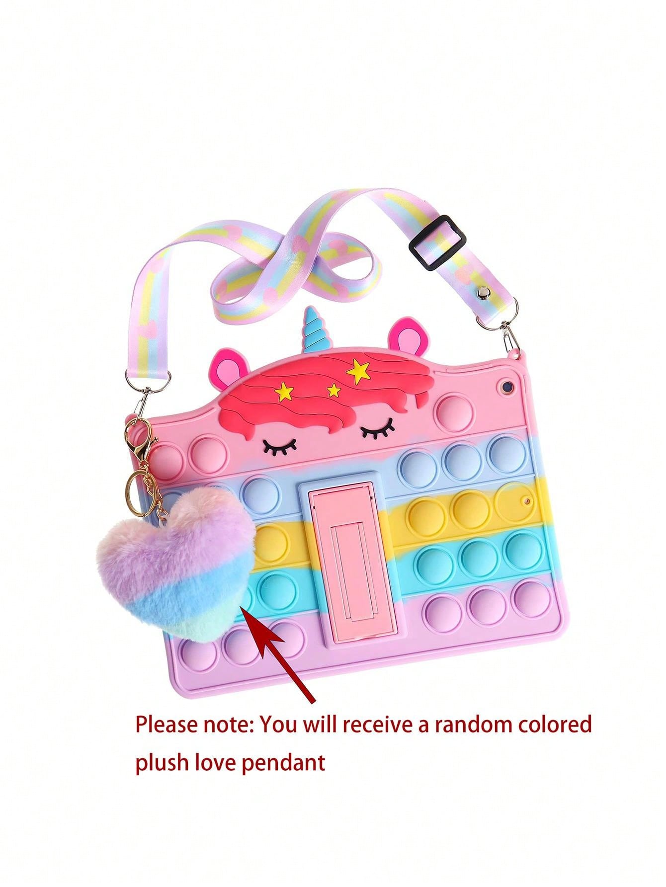 3D cute Unicorn Pop Case Compatible With ipad 10.2 9th 8th 7th Generation, Fidget Bubble Case Pop Push Case with Kickstand + Lanyard for Girls Women, Silicone Bubble Anxiety Stress Reliever Toys Case Compatible With ipad 2021 2020 2019Samsung a7 a8