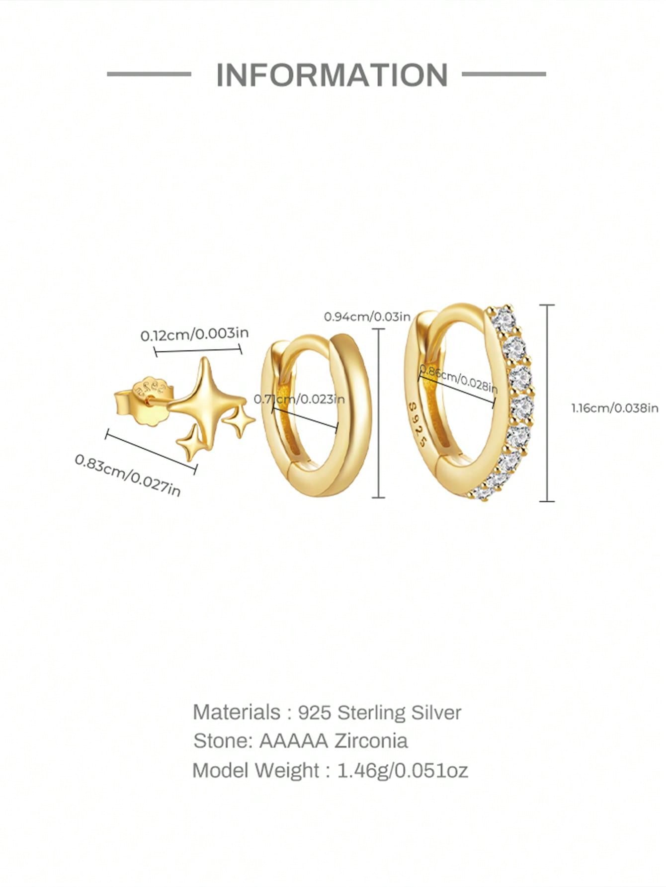 3Pcs 925 Sterling Silver Butterfly Star Earring For Women Trendy Stud Earring 18K Gold Plated Perfect For Wedding Valentine's Day Fine Jewelry
