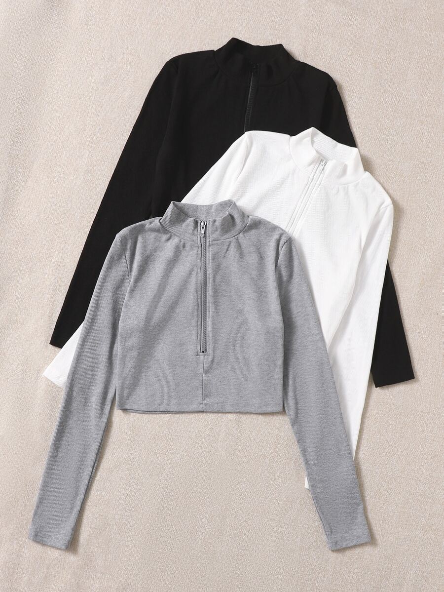SHEIN Unity 3Pcs Quarter Zip Crop Skinny Tee