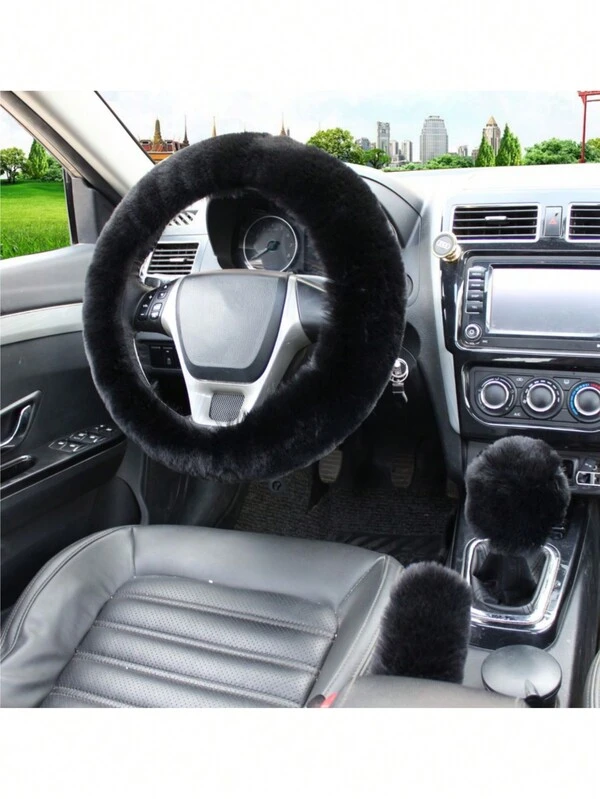 3Pcs Set Winter Fashion Comfortable Thermal Steering Wheel Cover,Handbrake Cover,Gear Shift Cover Set Universal Furry Warm Plush Car Interior