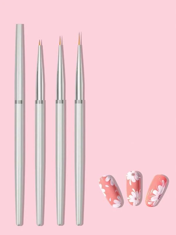 3Pcs/Set Silver Metallic Nail Art Striping Brushes Striping Nail Art Brushes For Long Lines, Details Nail Fine Drawing Pens