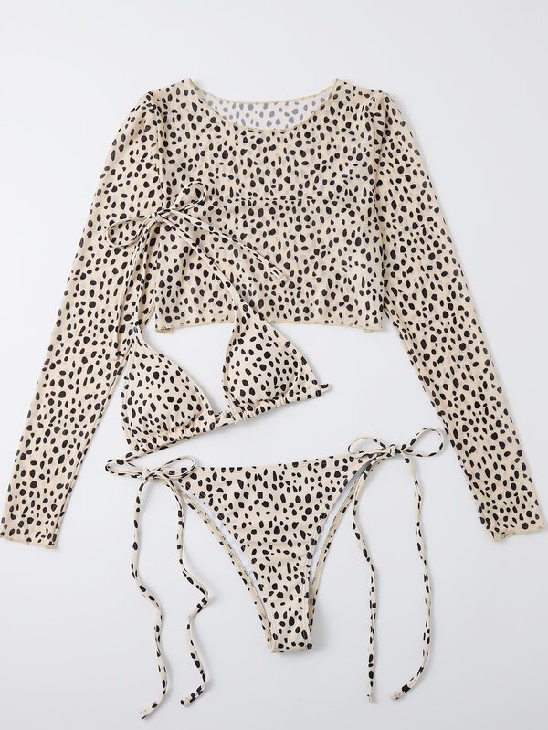 SHEIN Swim Vcay 3pack Dalmatian Triangle Bikini Swimsuit & Cover Up