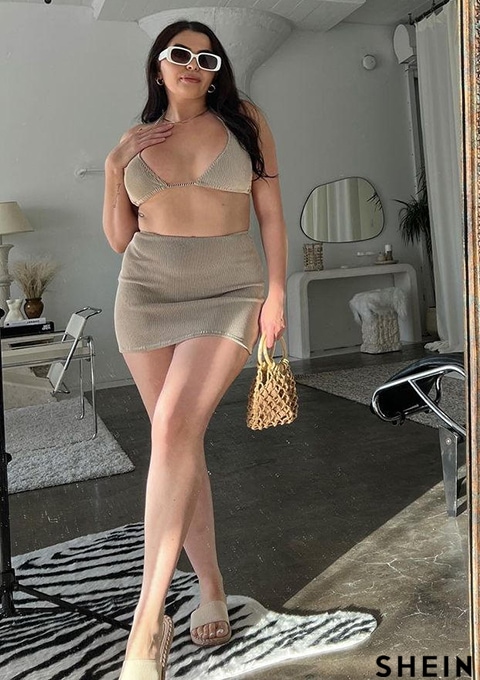 SHEIN Swim Basics 3pack Striped Halter Triangle High Cut Bikini Swimsuit & Beach Skirt