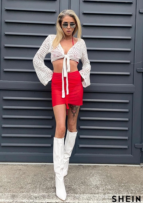 SHEIN Swim Vcay 3pack Textured Ring Linked Bikini Swimsuit With Beach Skirt