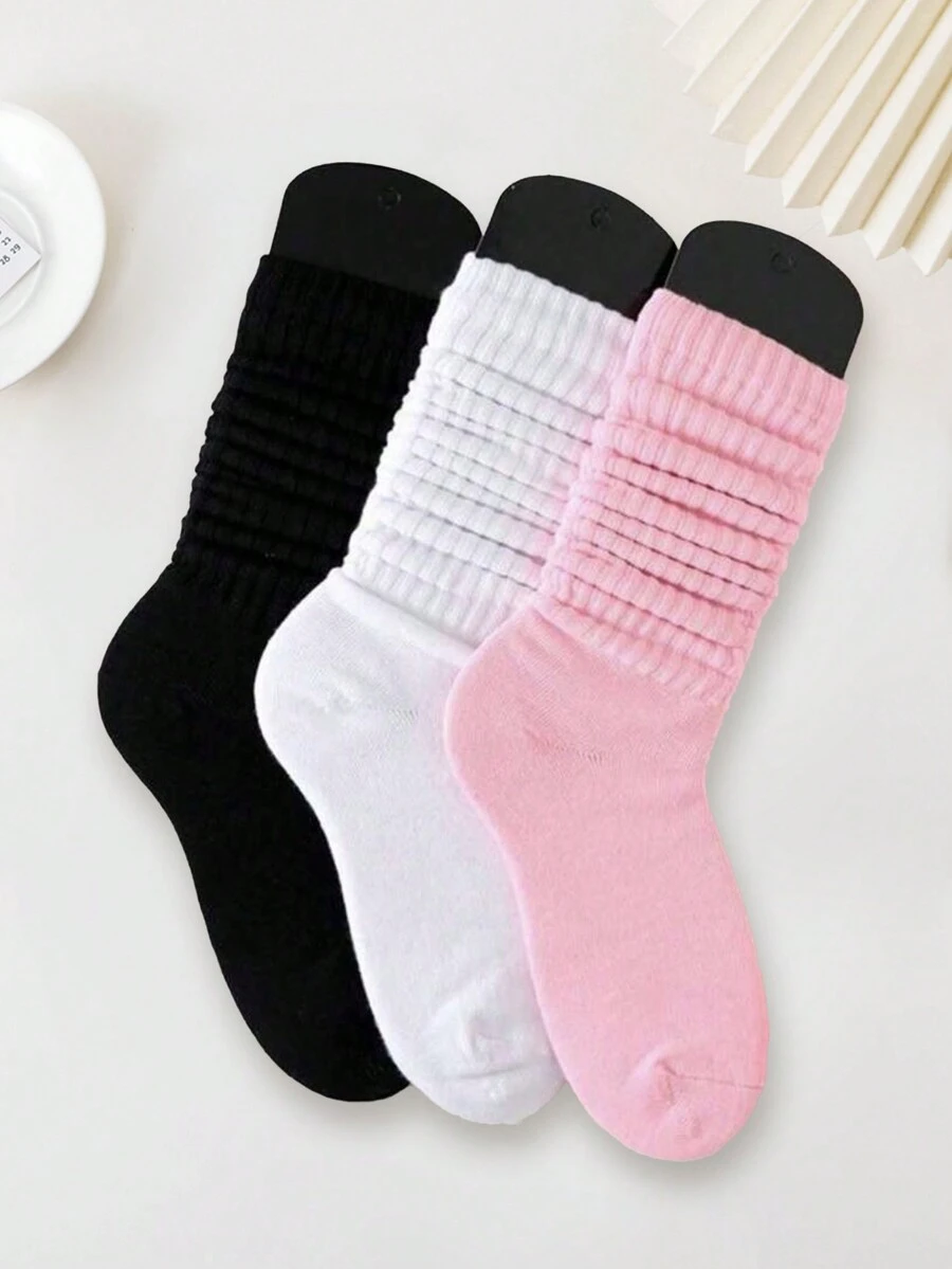 3pairs Plain Color Simple Basic Fashionable Mid-Calf Socks