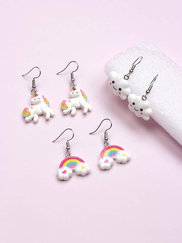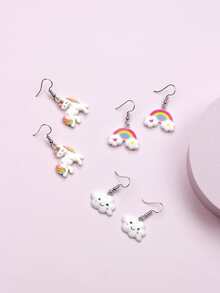 3pairs/set Girls Rainbow & Unicorn Decor Drop Earrings
