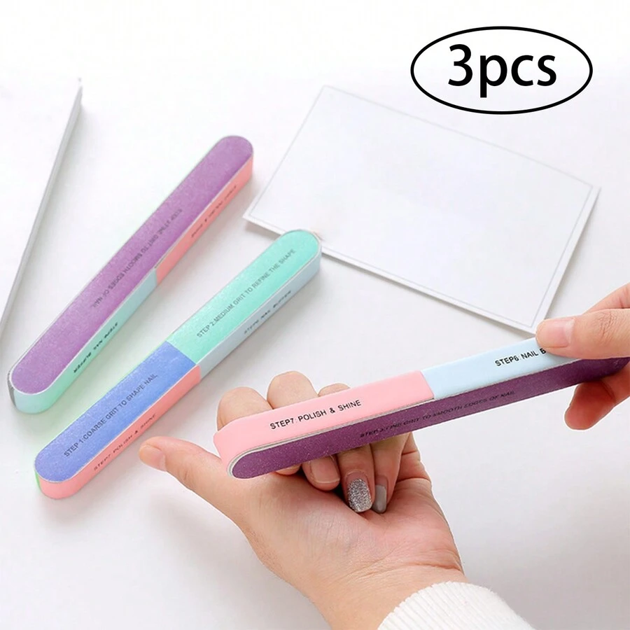 3pcs Double-Sided Nail File Set, Six Sided Polishing, Equipped With Polishing Sponge Sand Strips - Very Suitable For Nail Art And Polishing, Creative Printing Nano Nail File Polishing Sand Rub Strip, Six Sided Polishing File Nail Art Tool Strip Nail Grinder (Color And Letter Random)