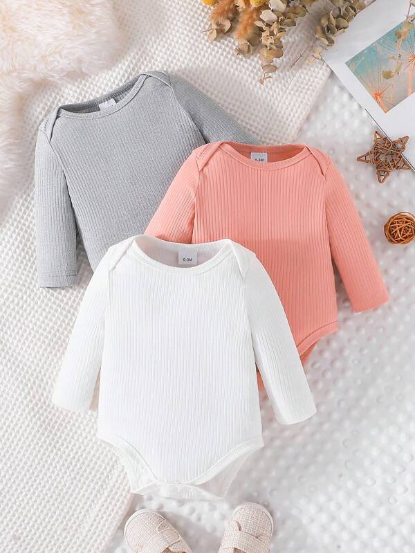 3pcs Baby Boy Ribbed Knit Bodysuit