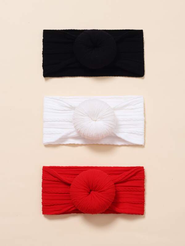 3pcs Baby Solid Color Sweet Donut & Bowknot Elastic Decorative Headband