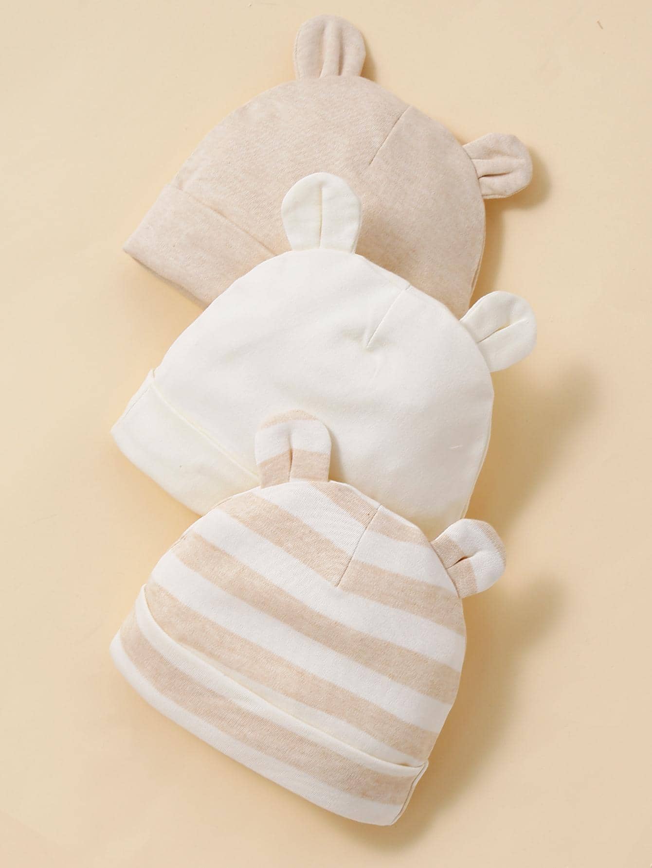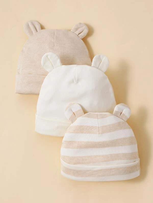 3pcs Bear Ear Decorated Baby Hats
