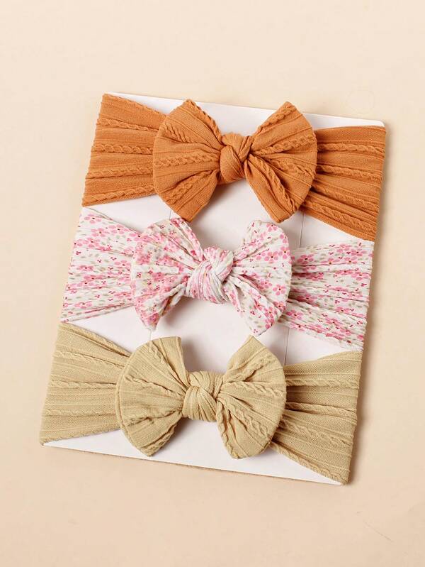 3pcs Children's/baby's Soft And Breathable Nylon Bow Headbands With Flower Printing