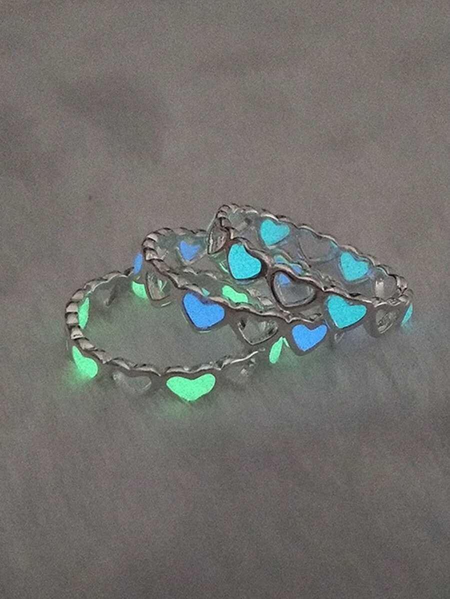 3pcs Creative Luminous Love Heart Adjustable Rings & Bracelets, Random Color