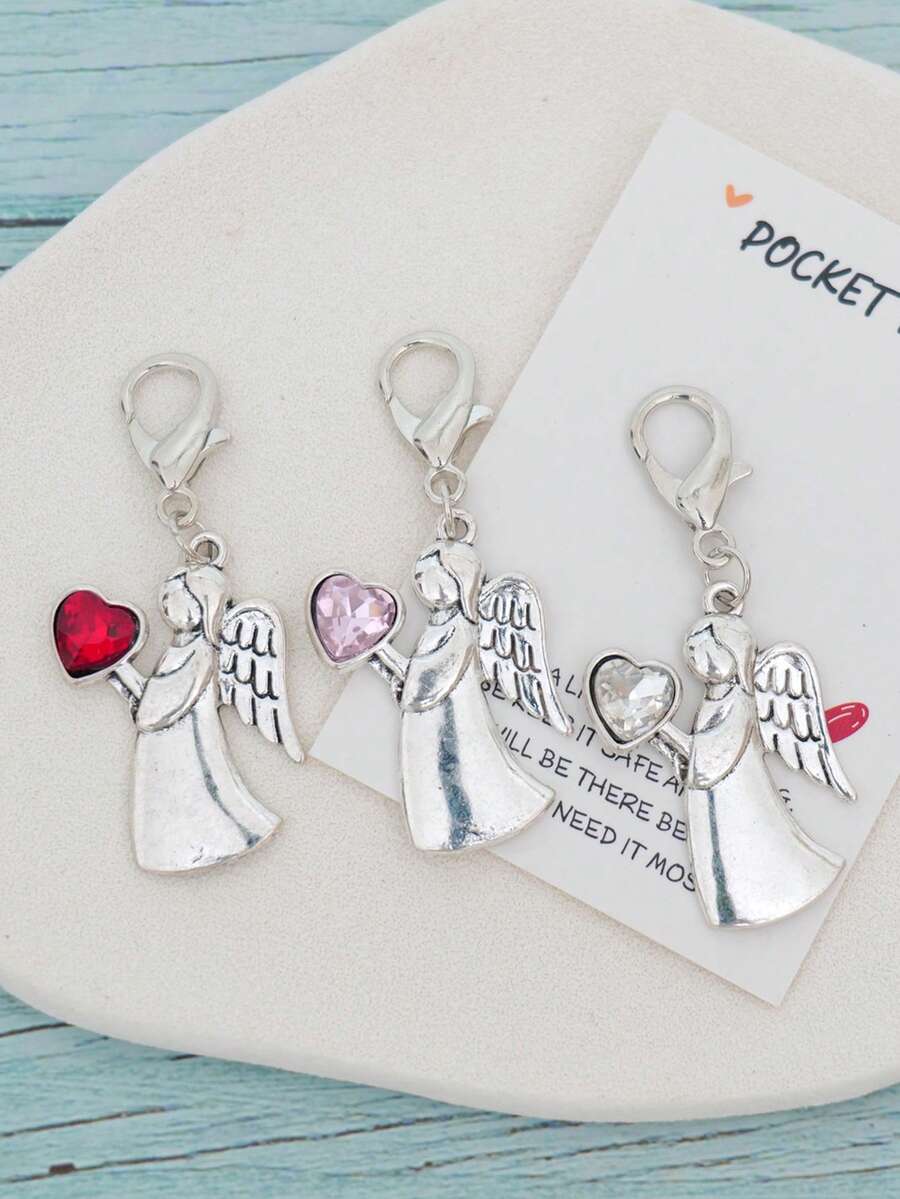 3pcs Cute And Charming Angel Love Keychains - Heart Rhinestone - Alloy Keychains, Travel Angel Mini Charm Keychain With Greeting Card - , Fantasy-Themed | Inspirational Gift For Graduation, Goodbyes, Holidays & More Bag Charms Car Accessories Teacher Friend Sister Gift Ideas