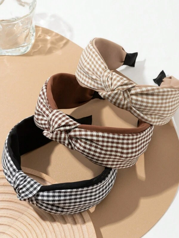 3pcs Fashionable Elegant Plaid Knot Headbands
