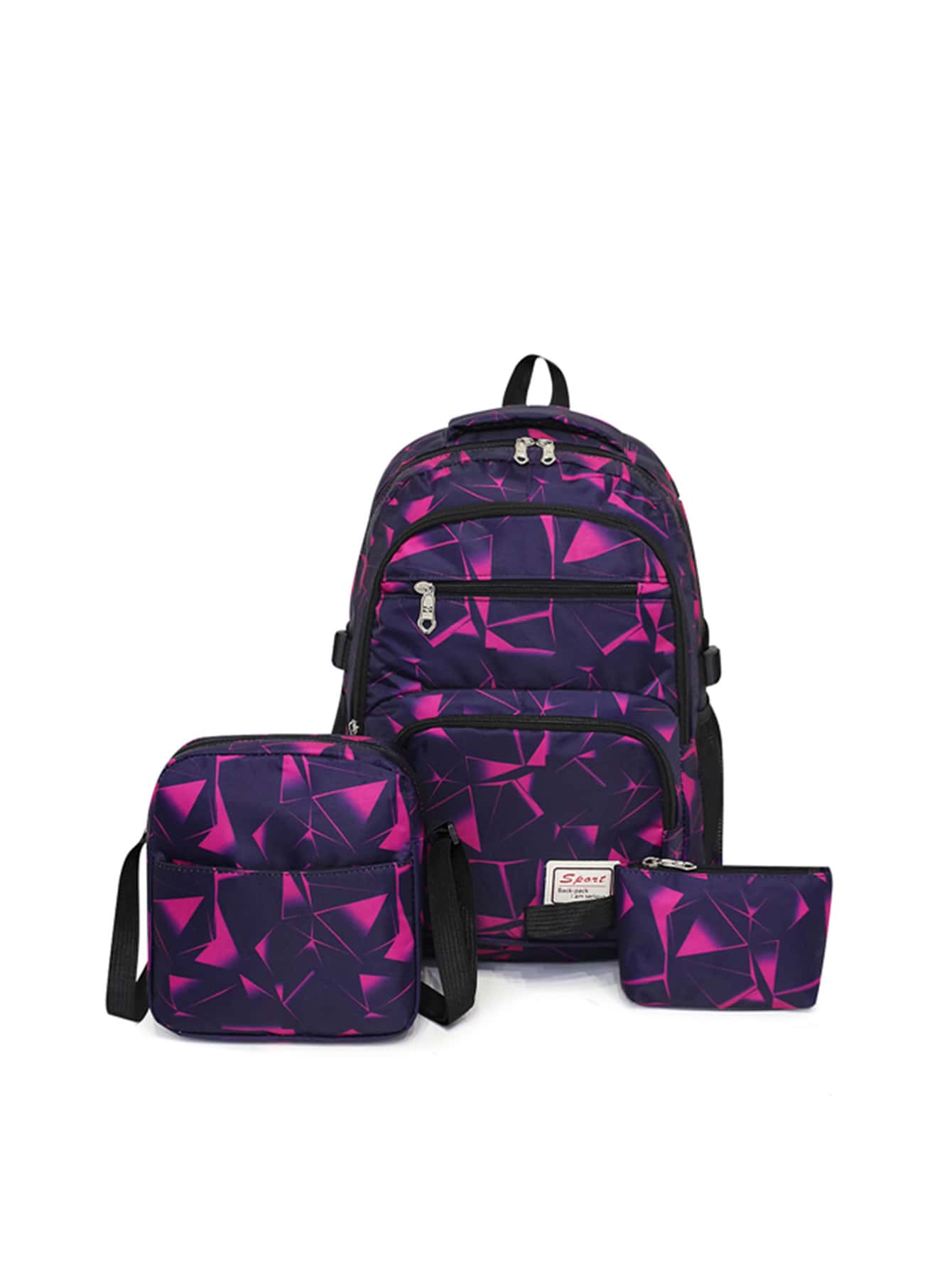 3pcs Geometric Print Letter Patch Decor Functional Backpack Set School Bag Set For Graduate, Teen Girls, Freshman, Sophomore, Junior & Senior In College, University & High School, Perfect For Outdoors ,Travel & Back To School