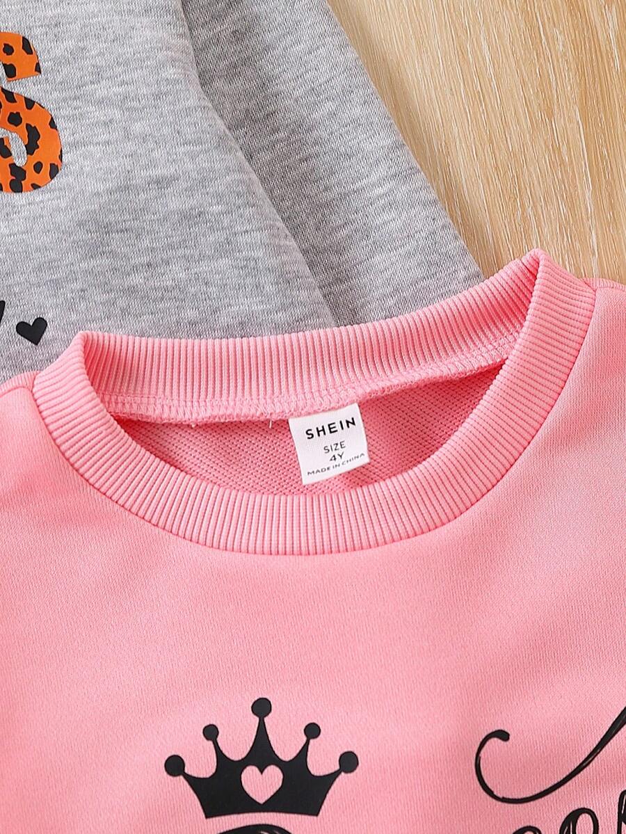 3pcs Girls' Cute Printed Round Neck Pullover Sweatshirt For Spring And Autumn