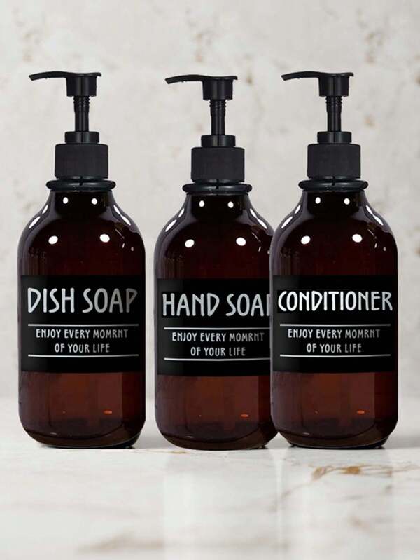 3pcs Glossy Brown Soap Dispenser Set 16 Oz Thread Pump Shower Gel Bottle Essential Oil Empty Bottle Lotion Bottles Cosmetics Sub Packaging Makeup Refillable Lotion Dispensing Bottles With 6 Waterproof Labels For DISH SOAP CONDITIONER HAND SOAP SHAMPOOM LOTION BODY WASH