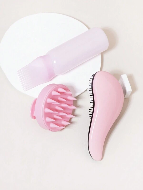 3pcs Hair Care Set Including Root Comb, Applicator Bottle, Hair Brush, Soft Silicone Scalp Brush, Head Spa Massager, Perfect For Home Salon And Gift Giving. Black Friday