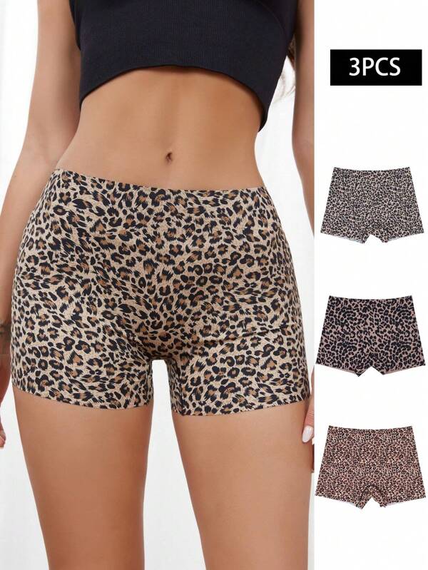 3pcs Leopard Pattern Comfortable Seamless Boxer Briefs, Breathable & Invisible